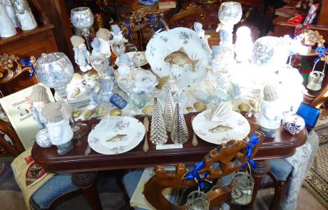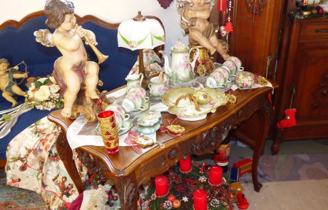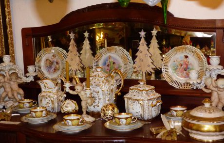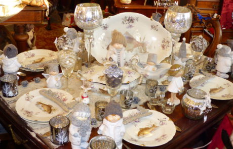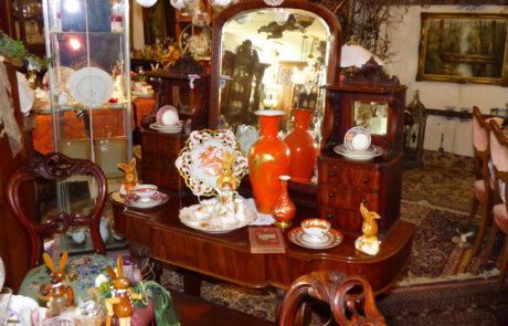 Neben antiken Möbeln, Spiegeln, Bildern, Steh-, Tisch- und Deckenlampen, bieten wir das komplette Sortiment gepflegter Tischkultur: Porzellan und Gläser, Besteck, Tischwäsche und Dekorationen. Unser Angebot umfasst auch alte Bücher, Uhren verschiedenster Art, Taschen, Hüte, Blechspielzeug, Puppen und andere Spielsachen. Damit ist aber die Vielfalt der Dinge, die Sie bei uns finden können, noch lange nicht abgeschlossen. Sollten Sie etwas Bestimmtes suchen, fragen Sie uns einfach danach, wir antworten gern!