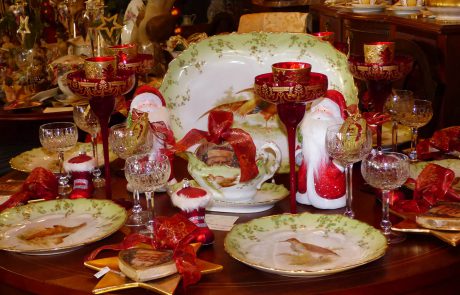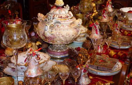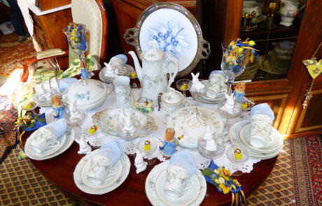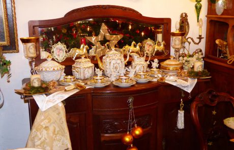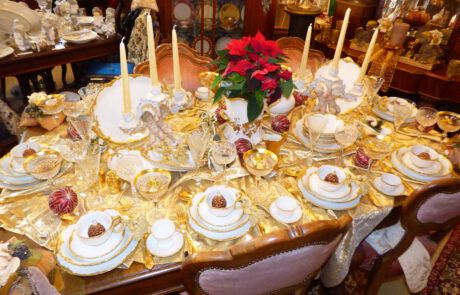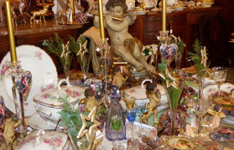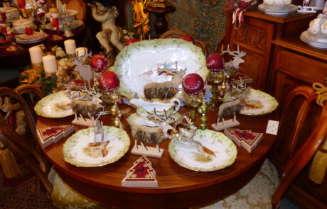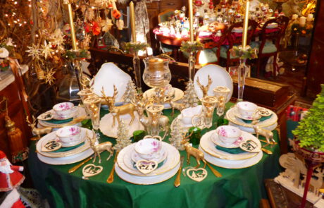ANTIKE MÖBEL · FEINES PORZELLAN · ELEGANTE TISCHWÄSCHE · EDLE DEKORATIONEN