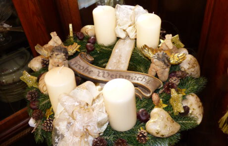 Als Inspiration für unsere Kunden, und um unser Angebot zu erweitern, eröffnen wir jedes Jahr im Zeitraum vor und nach Ostern eine „Frühjahrsausstellung“, in der wir thematisch passende Dekorationen präsentieren. Ab etwa Anfang November findet dann die „Weihnachtsausstellung“ statt. Ein in der Mitte des Raumes aufgestellter, liebevoll geschmückter Weihnachtsbaum unterstreicht die adventliche Atmosphäre. Die üppigen Arrangements beider Ausstellungen leben von einem harmonischen Zusammenspiel neuer und alter Stücke. Sie sind ein wahres Paradies für Liebhaber schöner Dinge.